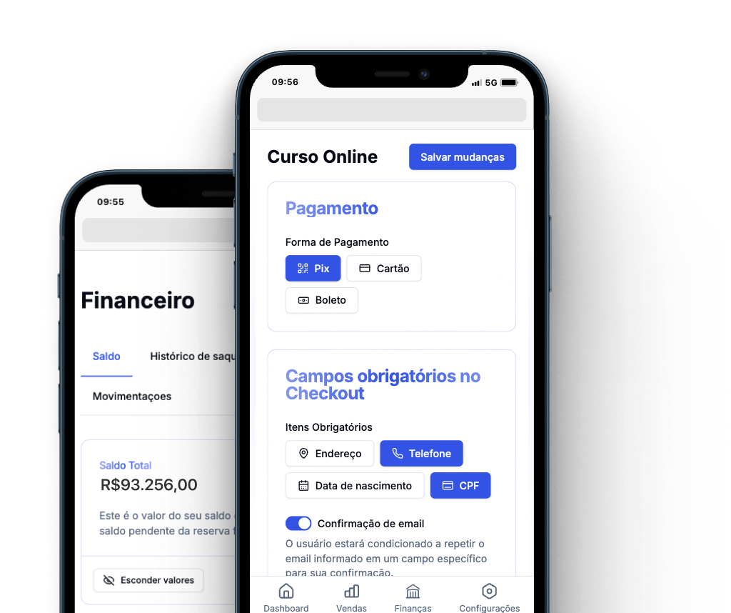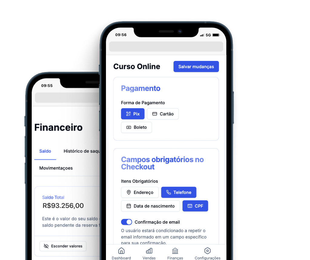 Com nosso checkout Builder, você controla o design e a experiência do cliente na compra. Personalize cores, fontes e elementos, criando uma página de checkout que converte e reflete a identidade da sua marca, tudo de forma simples e sem necessidade de habilidades técnicas.
